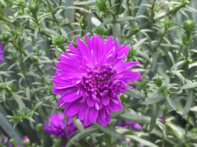 There are several shades of pink that I find so beautiful in the September garden and they come with a variety of Aster (no ID, please help!) and Anemone Hupensis - Fantasy Pocahontas and Little Red Hiding Hood.