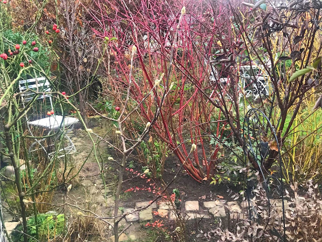 A fost o zi frumoasă, de ieșit în grădină. Am mai strâns niște frunze uscate, am curățat ramurile de hortensii și am fotografiat cornii.